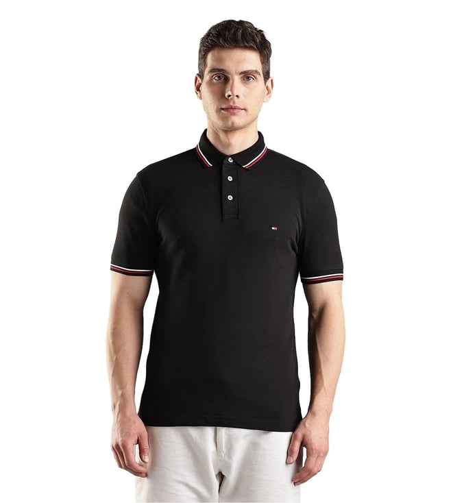 Navy Cotton Regular Fit Solid Polo T-Shirt