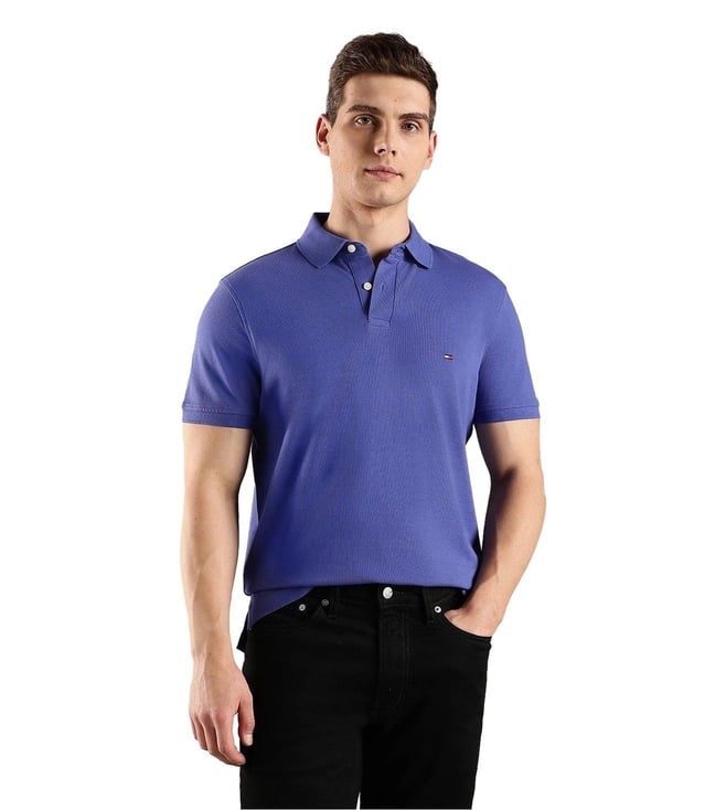 Blue Solid Regular Fit Cotton Polo T-Shirt