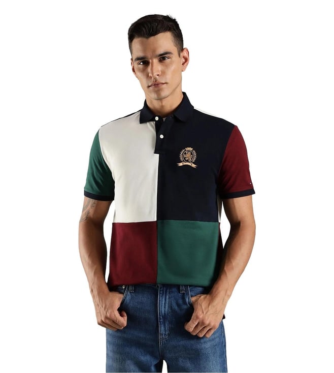 Multicolor Cotton Regular Fit Colour Block Polo T-Shirt