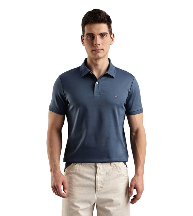 Breezy Blue Slim Fit Cotton Polo T-Shirt
