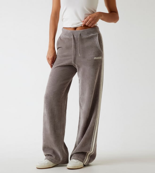 Grey Side Striped High-Rise Straight Track Pants