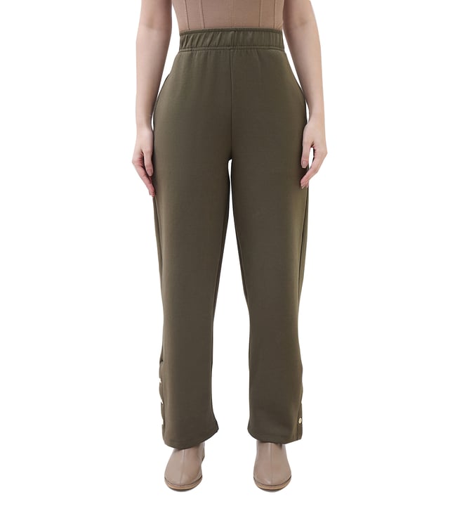 Autumn Green Cotton Regular Fit Trackpants