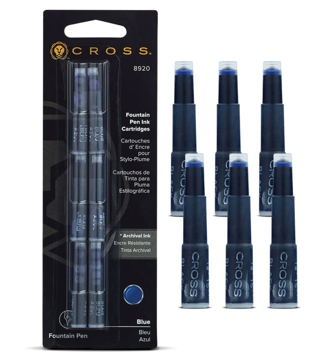 Blue Premium Smooth Writing Fountain Pen Blue Ink Cartridges - Pack of 6