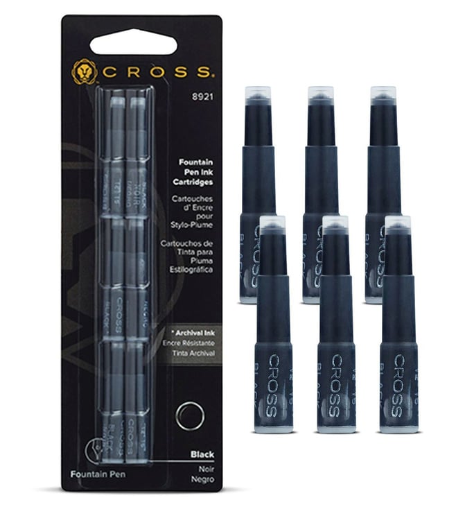 Black Premium Smooth Writing Fountain Pen Black Ink Cartridges - Pack of 6