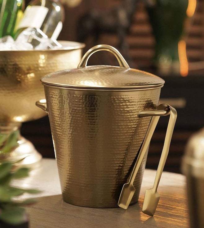 Gold Stainless Steel Matt Finish Hammered Ice Bucket With Tong