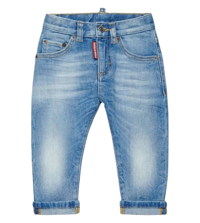 Baby Boys Denim Blue Abrasions High Rise Fitted Jeans