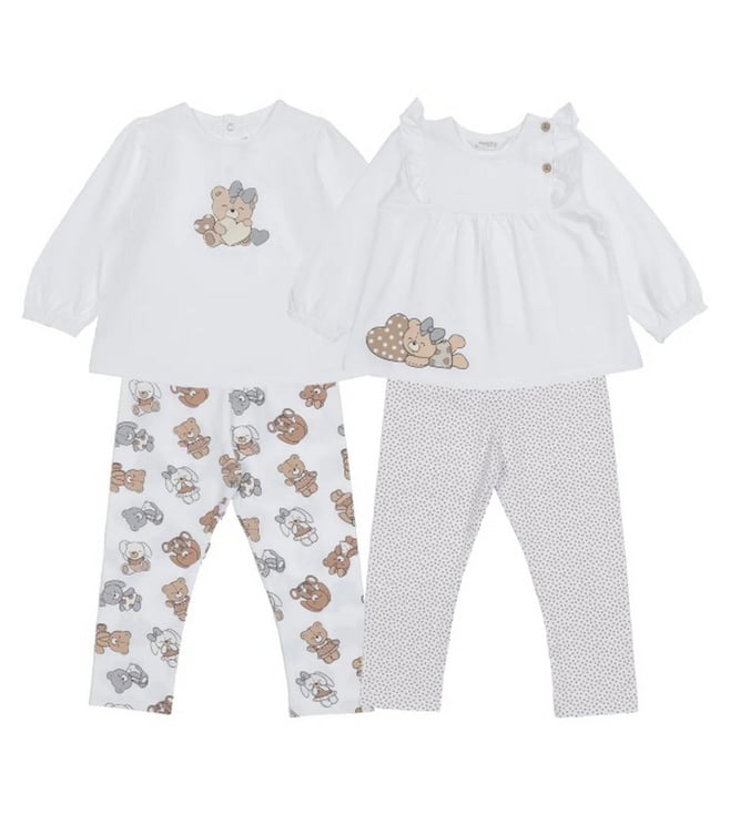 Kids White Printed Regular Fit Romper (Pack of 2)