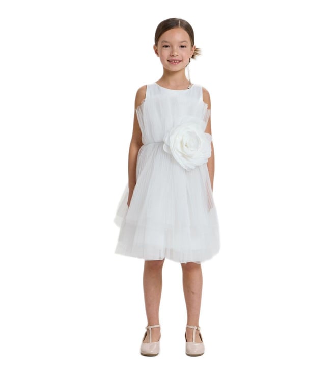 Girls White Special Occasions Elegant Floral Regular Fit Hourglass Dress