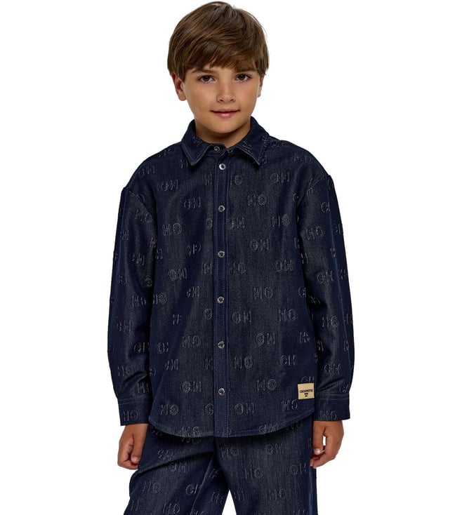 Blue Fashion Rebellion Embossed Regular Fit Denim Jacket & Pant Set