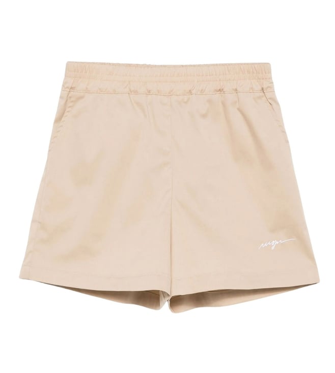 Girls Beige Logo-Printed Comfort Fit Track Shorts