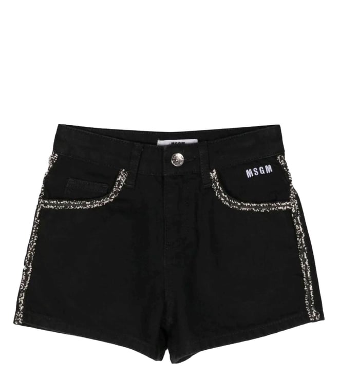 MSGM Black Printed Comfort Fit Denim Short