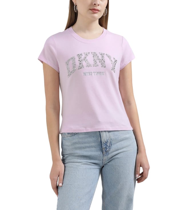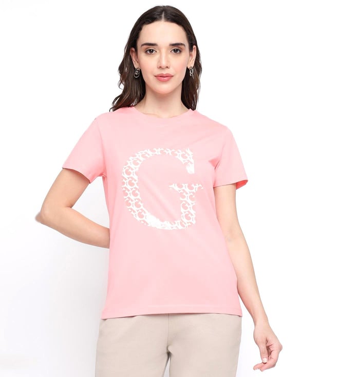 Pink Printed Crew Neck Short Sleeve T-shirt