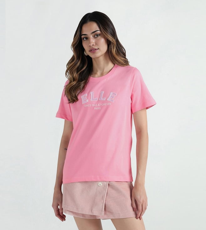 Women Pink Solid Crew Neck Pure Cotton T-Shirt