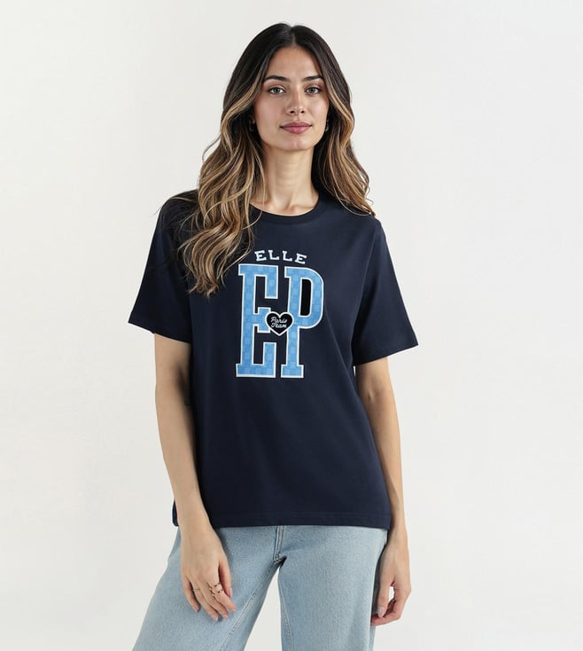 Women Blue Graphic Print Crew Neck Pure Cotton T-Shirt