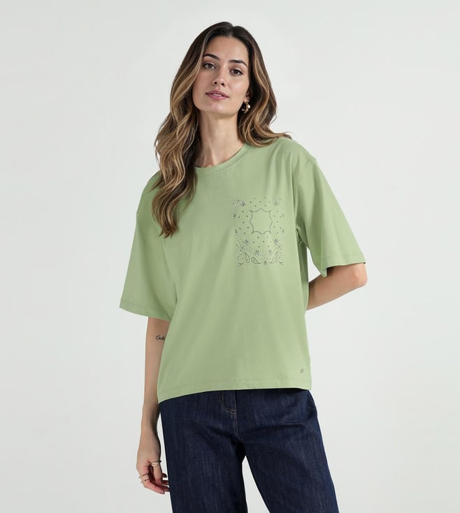 Women Green Solid Round Neck Pure Cotton T-Shirt