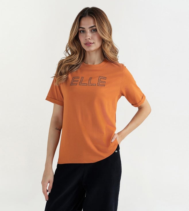 Women Brown Solid Crew Neck Pure Cotton T-Shirt