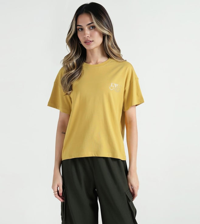 Women Yellow Solid Round Neck Pure Cotton T-Shirt