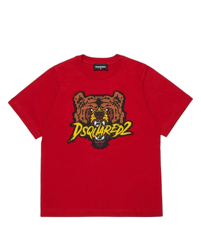 Red Bear & Embroidered Logo Printed Comfort Fit T-Shirt