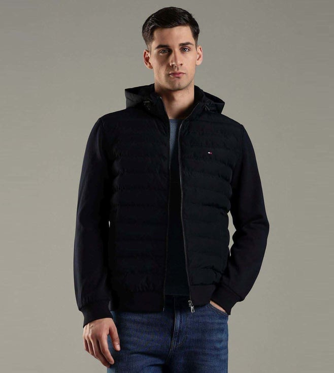 Men Mid Blue Printed Regular Fit Hooded Sweatshirt