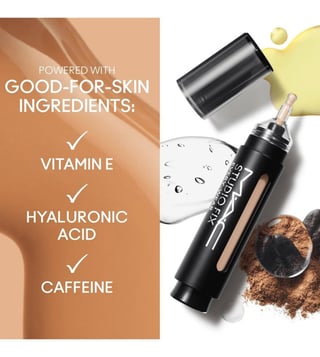 Click, tap and go! Conceal and correct here, there or everywhere with our high-control face pen that doesn't crease or cake. This two-in-one concealer and foundation pen is transfer-proof, waterproof and wears comfortably for 36 hours for the best foundation coverage. It also camouflages undereye circles, conceals redness and blemishes and evens skin tone. Infused with vitamin E, hyaluronic acid and caffeine, the mask-friendly formula applies, builds and blends easily. Available in 33 flexible, medium-to-full buildable shades with a natural matte finish.