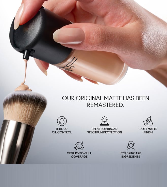 Our original matte has been remastered. The iconic 24 hour buildable, breathable foundation you know and your skin loves has been fixed and remixed with a soft matte finish. The new good for skin formula is infused with 87 percent skincare ingredients, including sugar kelp extract to control oil along with red algae extract and hyaluronic acid to hydrate skin over time. NEW Pro Fluid Technology moves with skin for a natural look and comfortable, lightweight wear.