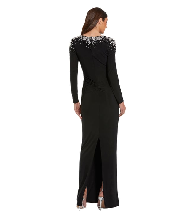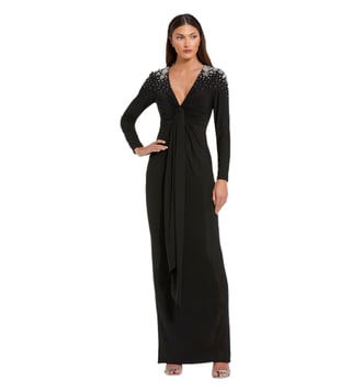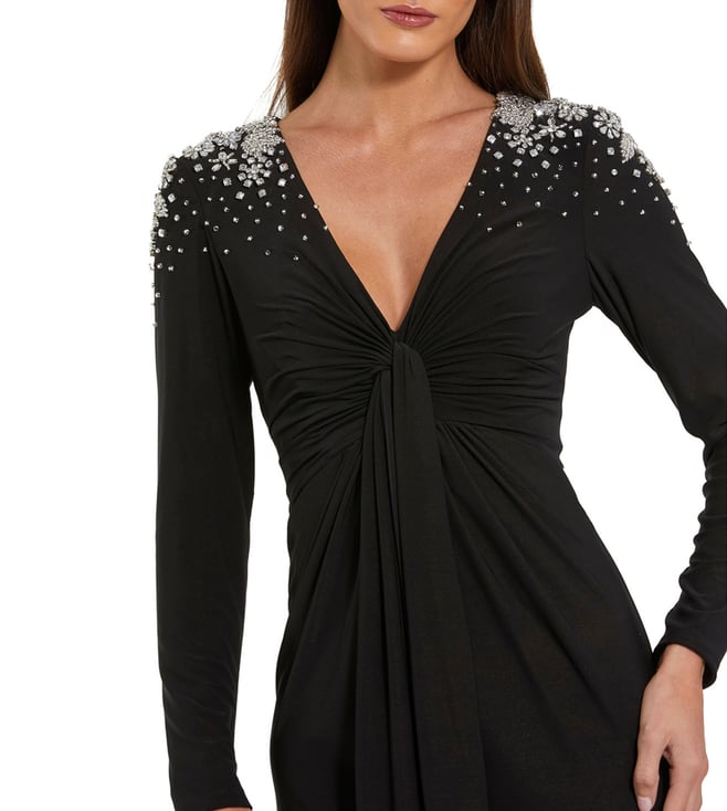 MAC DUGGAL Black Faux Knot Beaded Embellished Comfort Fit Gown