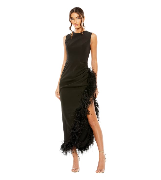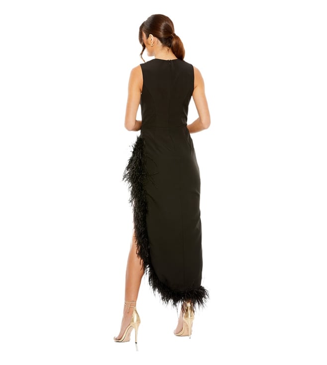 MAC DUGGAL Black Feather Detail Comfort Fit Wrap Dress