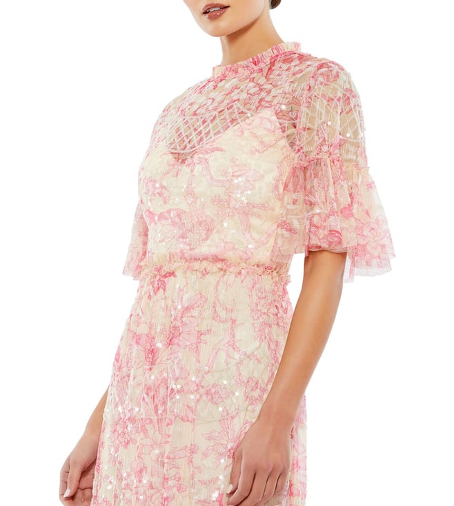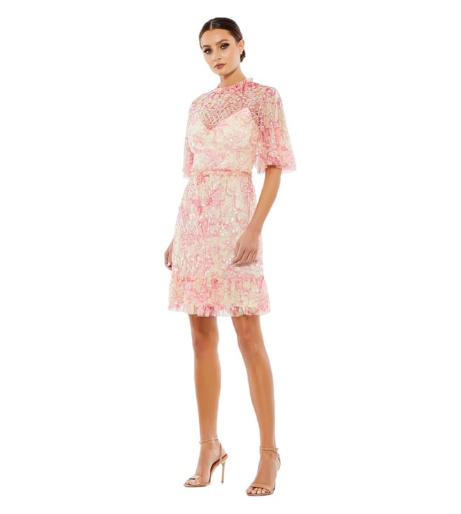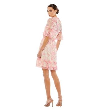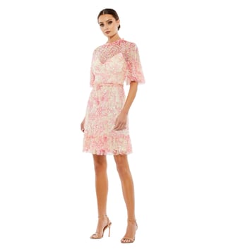Elevate your style with the MAC DUGGAL blush flounce embellished comfort fit mini dress. This stunning dress features a flattering comfort fit design, adorned with delicate embellishments and a flounce detail for a touch of elegance. Perfect for any special occasion, this dress offers both style and comfort, making you feel confident and chic all night long. Stand out in the crowd and make a statement with this versatile and eye-catching piece that will surely turn heads.