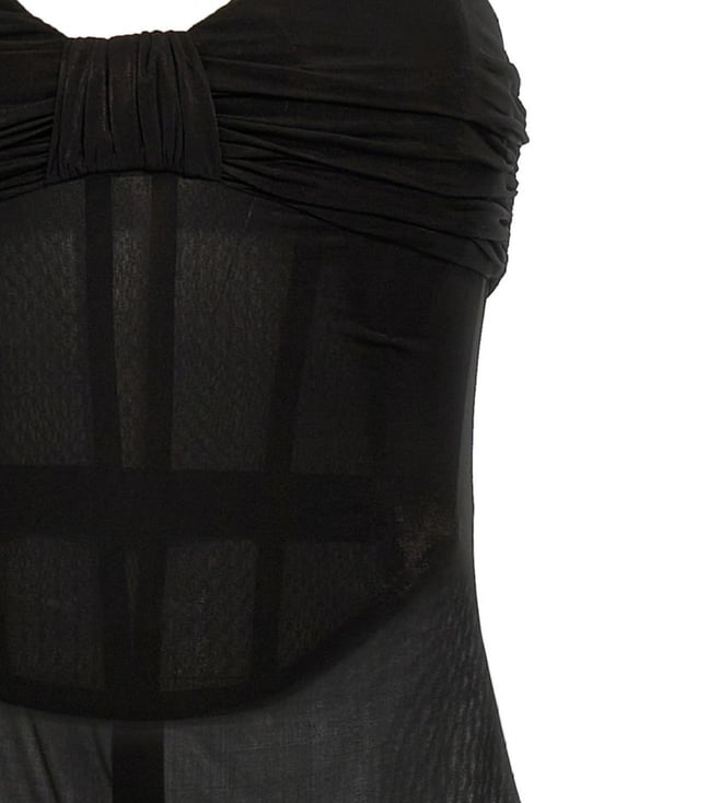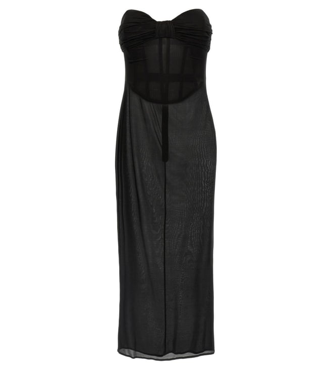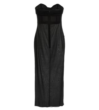 Unveil your allure with this captivating black dress, a masterpiece of modern elegance. Crafted from a luxurious blend of 92% cupro and 8% elastane, it drapes your silhouette with a whisper of sophistication. The transparent pattern adds a daring edge, while its sleeveless, strapless design accentuates your natural grace. A discreet closure ensures a seamless fit, making it the perfect choice for those who dare to enchant and captivate with every step.