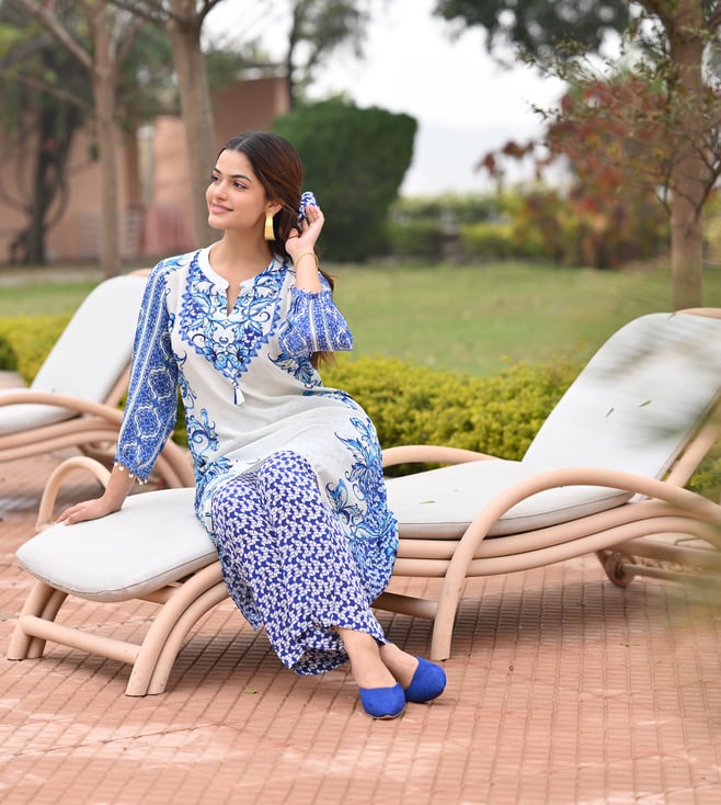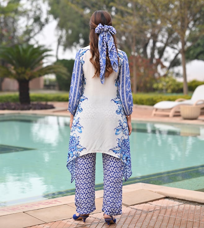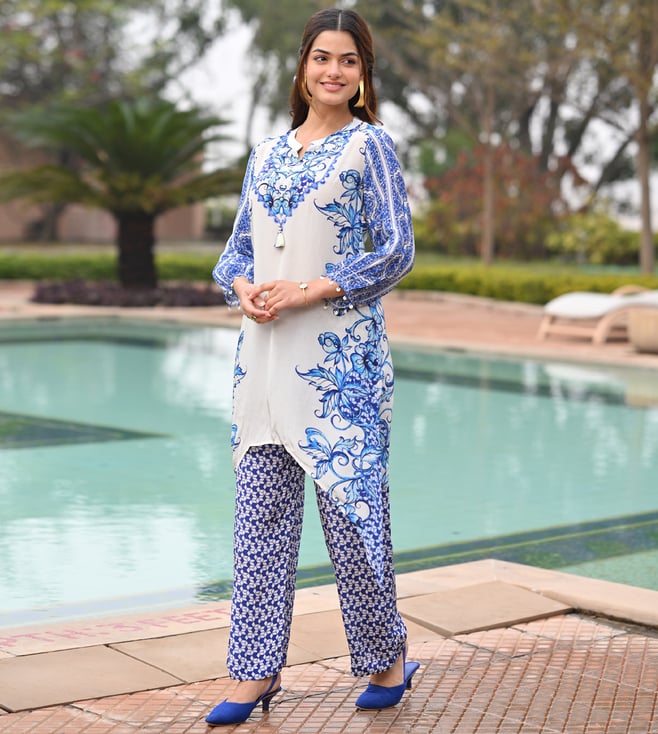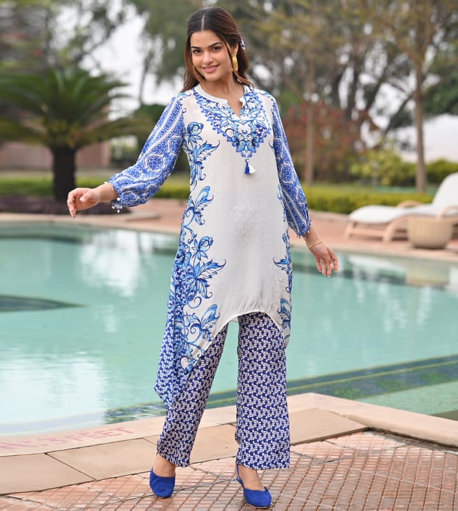 Mahee Jaipur Blue Crepe Slim Fit Kurta Set