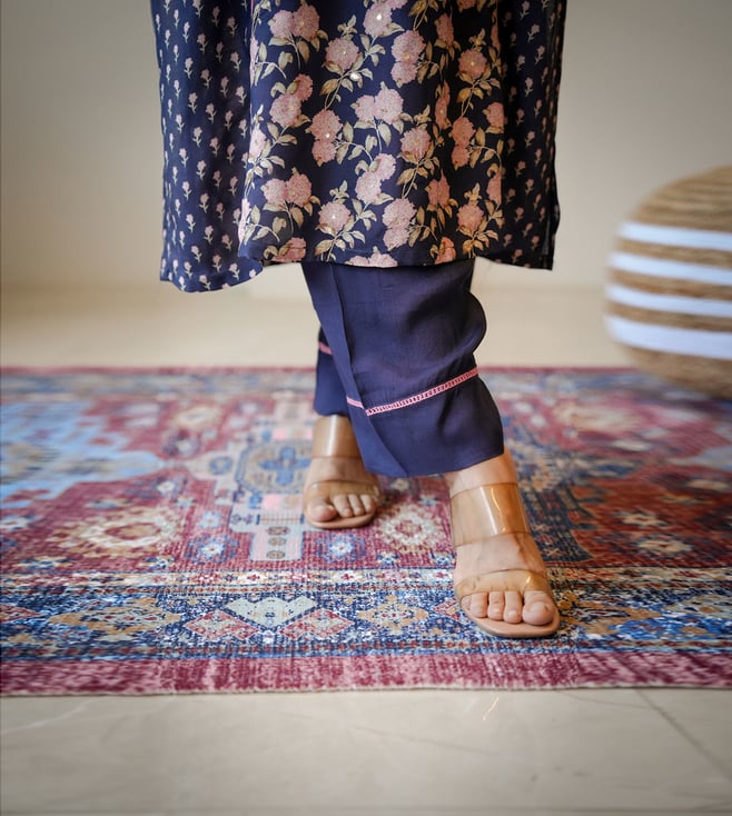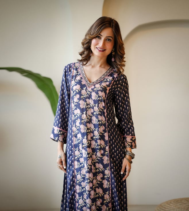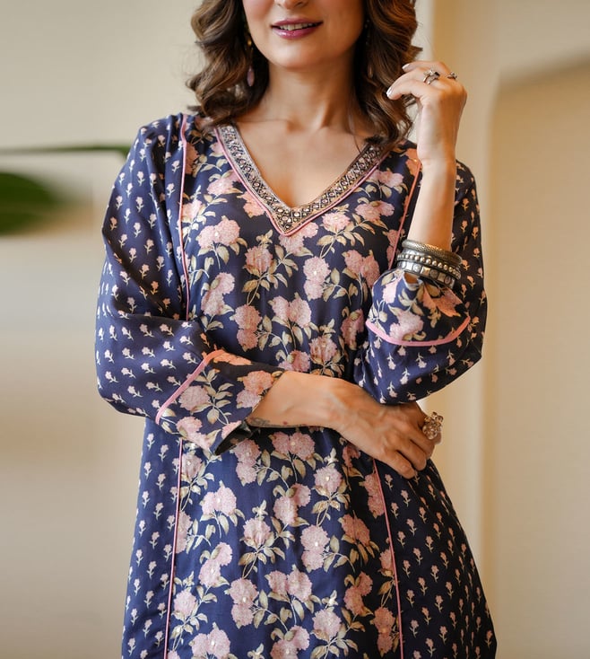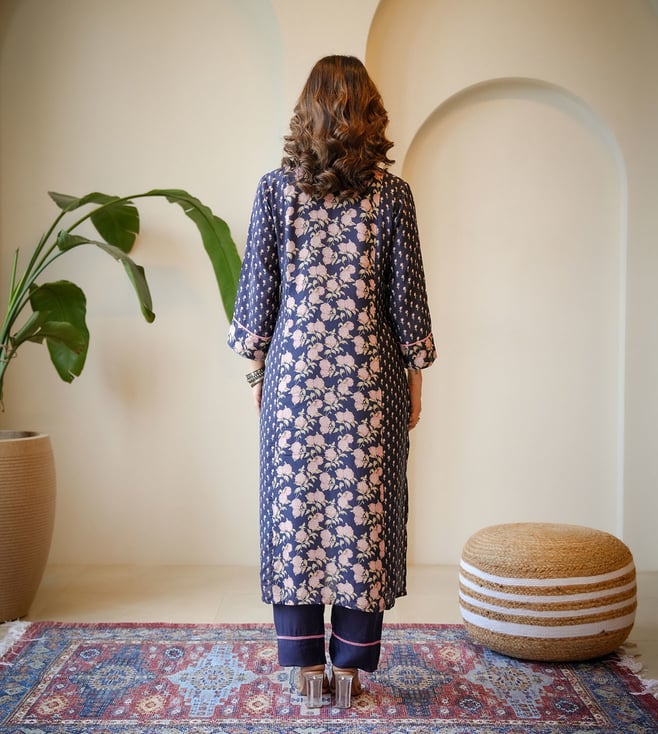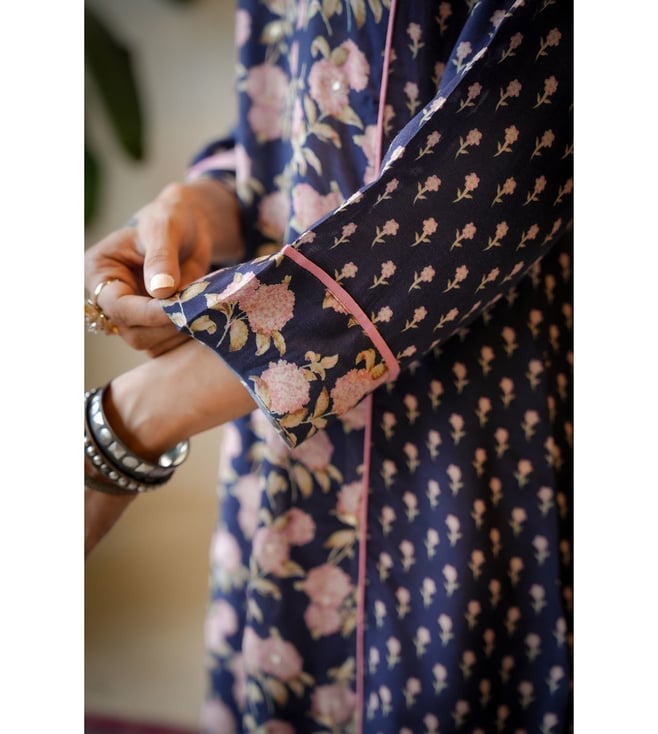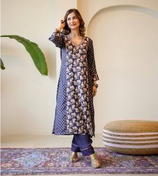 Mahee Jaipur Blue Muslin Slim Fit Block Print Kurta Set