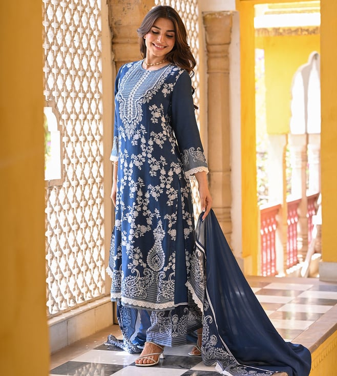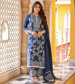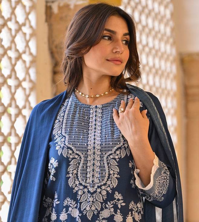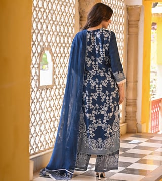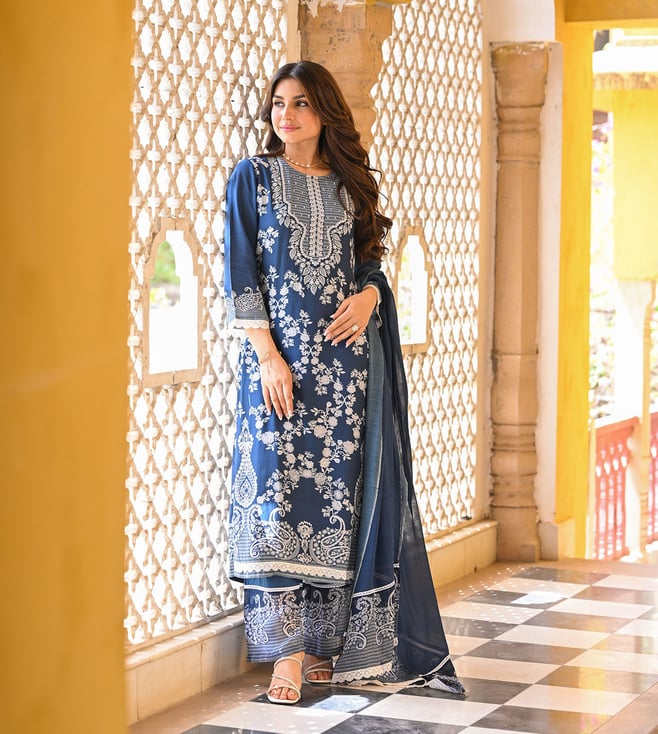 Mahee Jaipur Blue¿ Muslin Slim Fit Suit Set