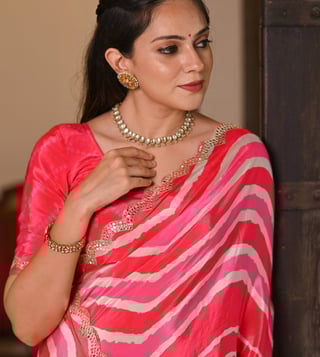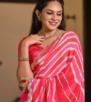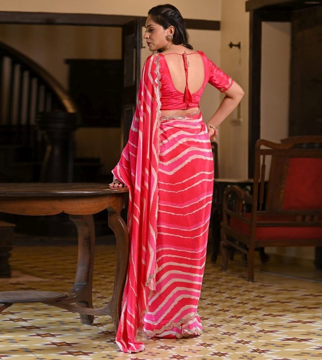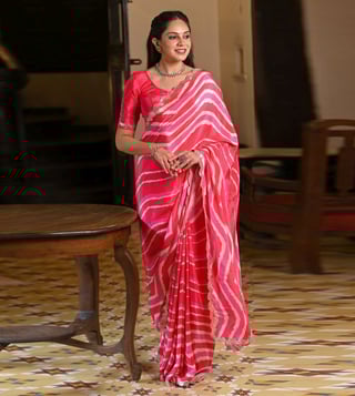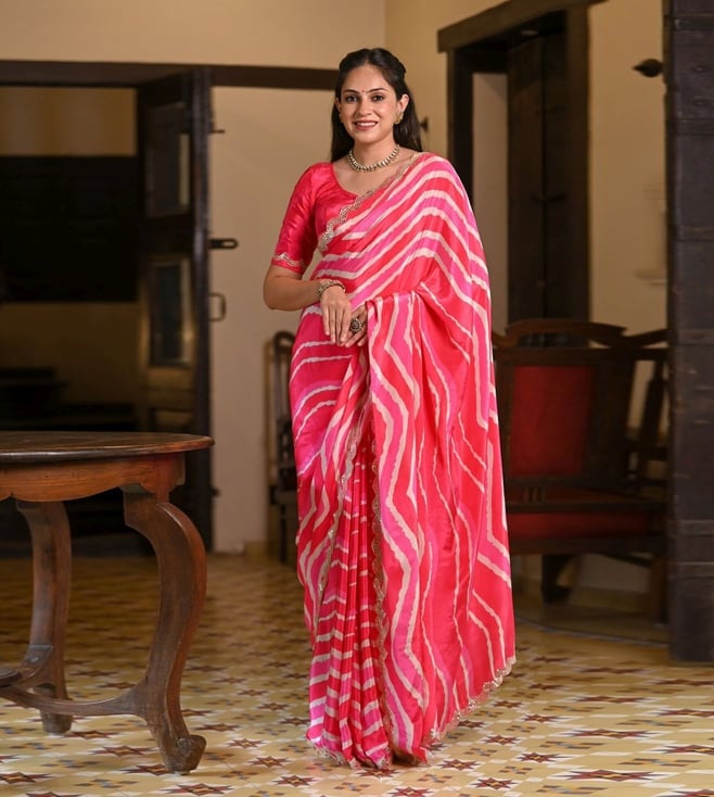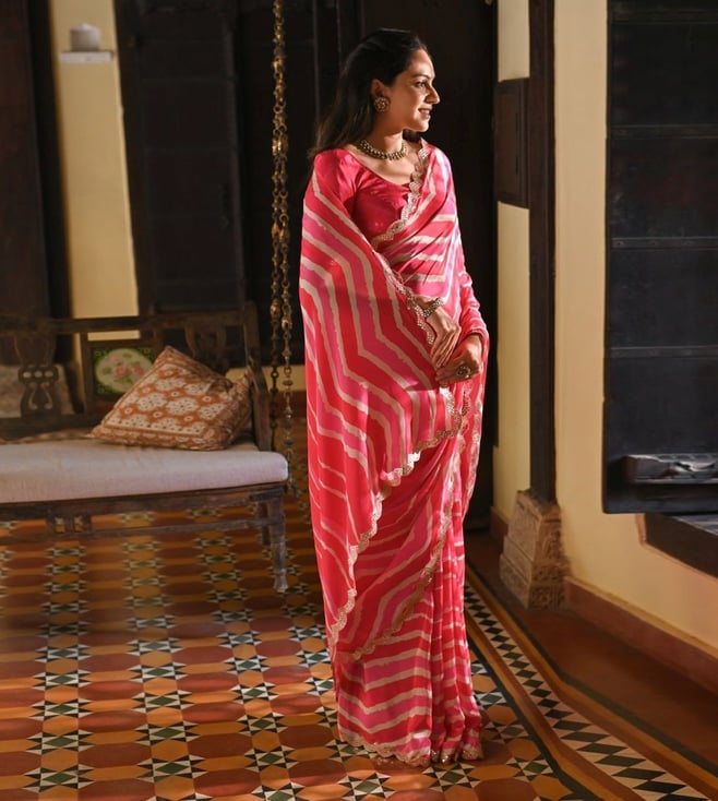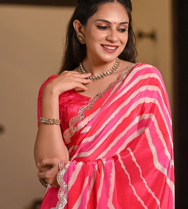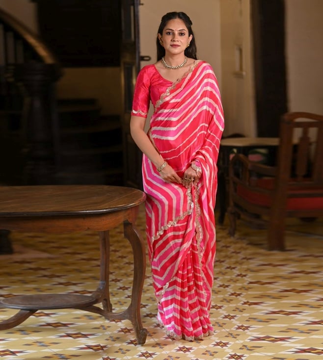 Mahee Jaipur Pink Lehriya Crepe Saree