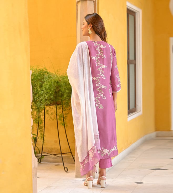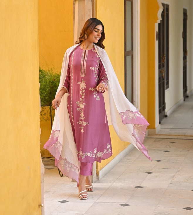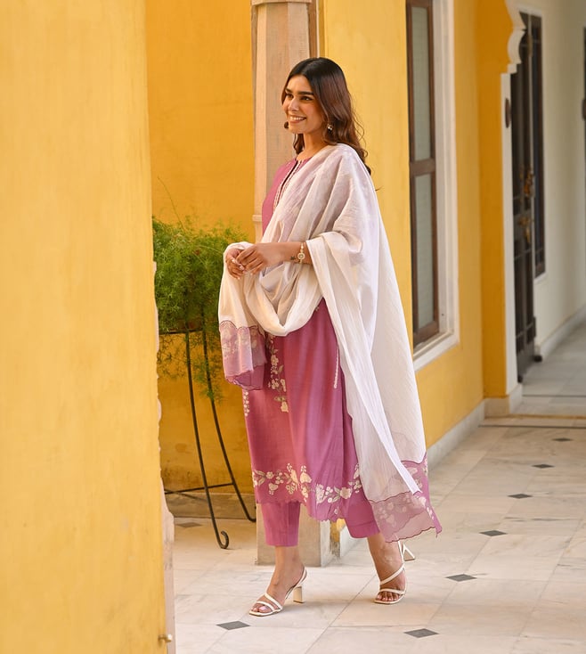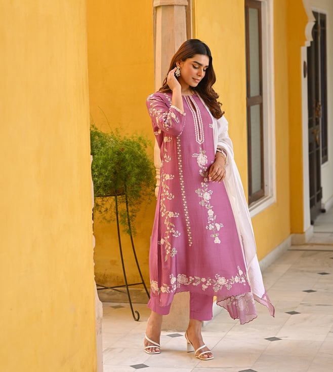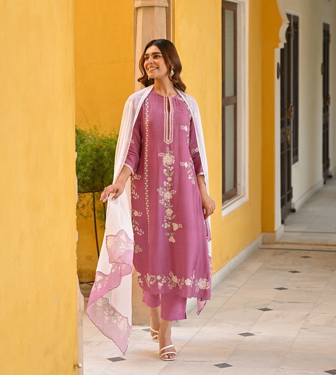 Mahee Jaipur Purple Muslin Slim Fit Suit Set