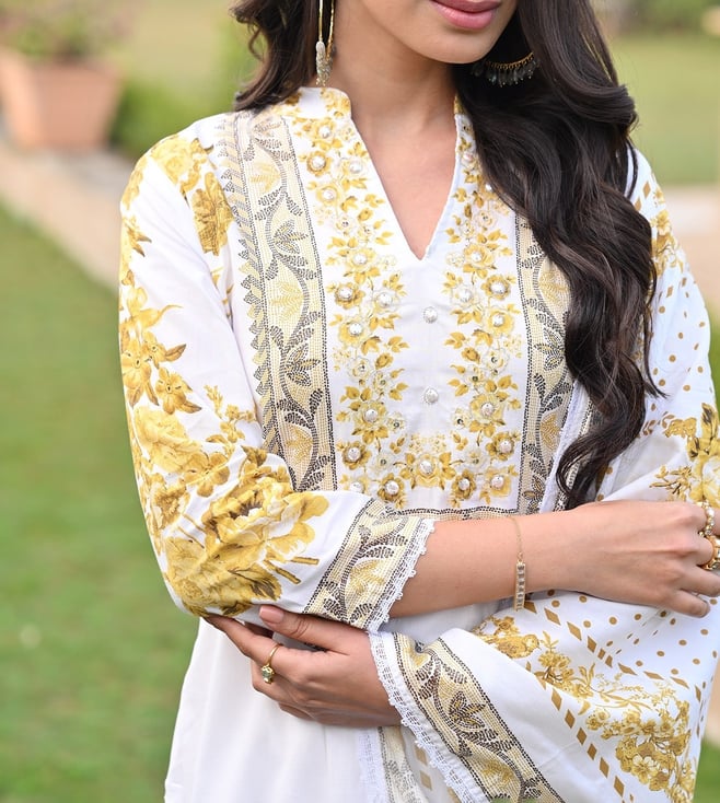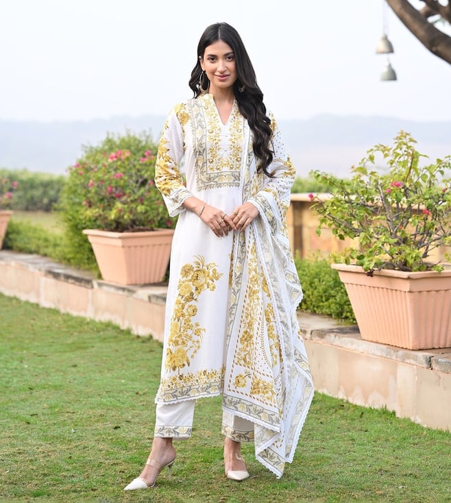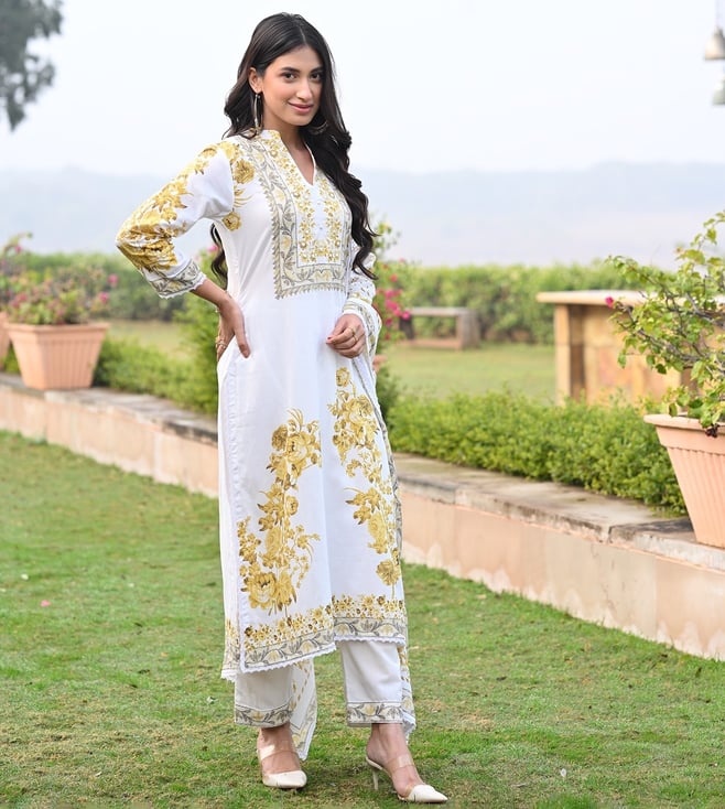 Mahee Jaipur Yellow Printed Kurta Bottom Set