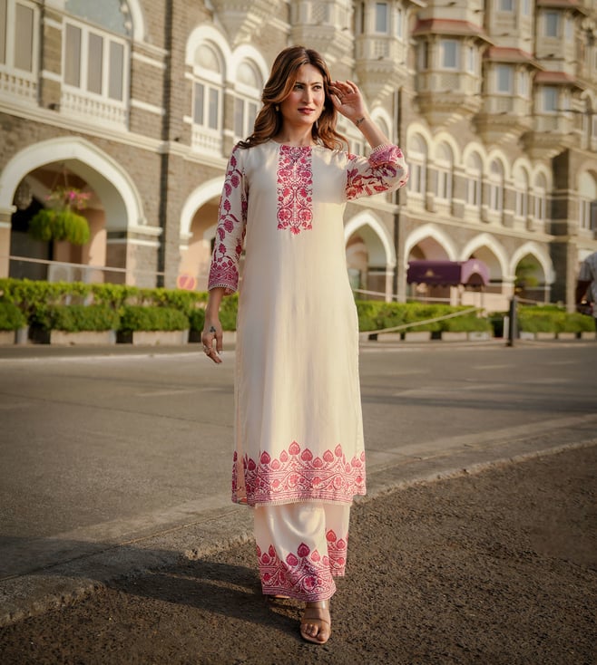 Pink Spectacular Floral Print Placement Pure Crepe Top with Pant Coordinated Set