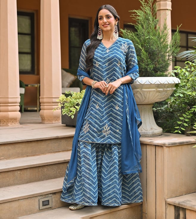 Rama Green Jashn Block Floral Print Chanderi Kurta with Pant and Dupatta