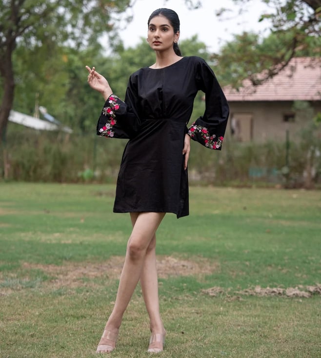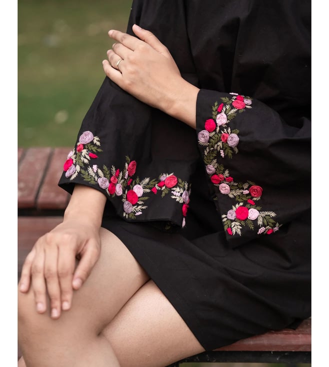 MAI India Black Cotton Relaxed Fit Hand Embroidery Dress