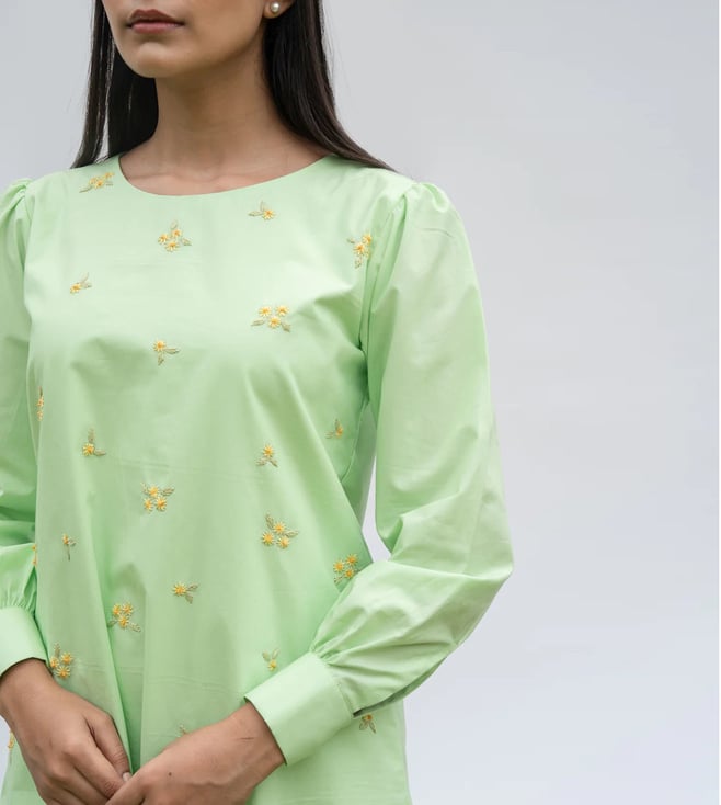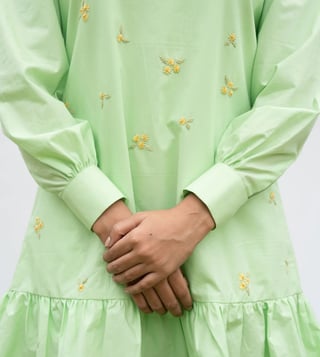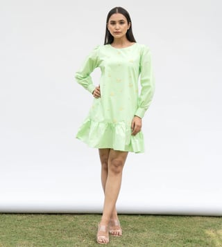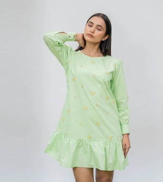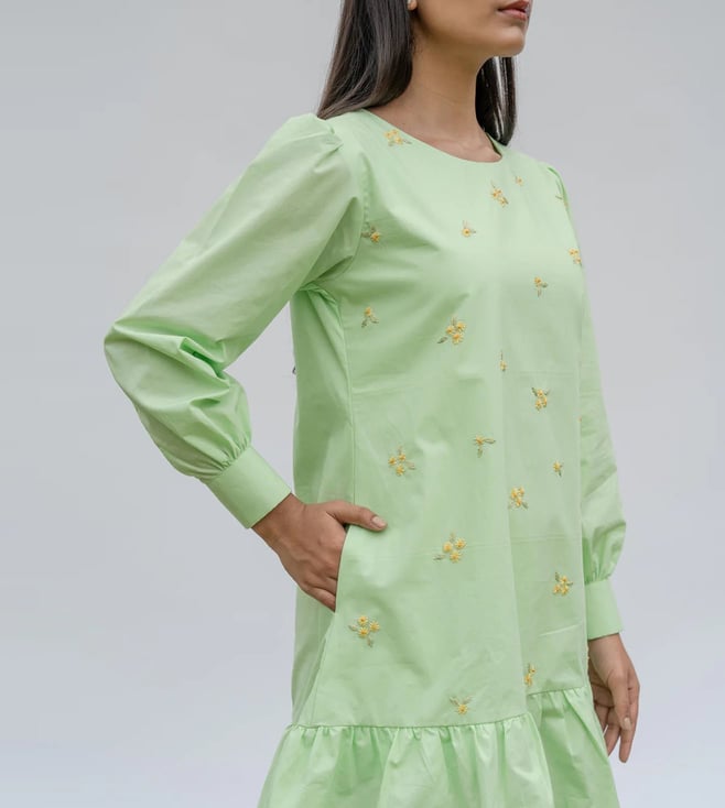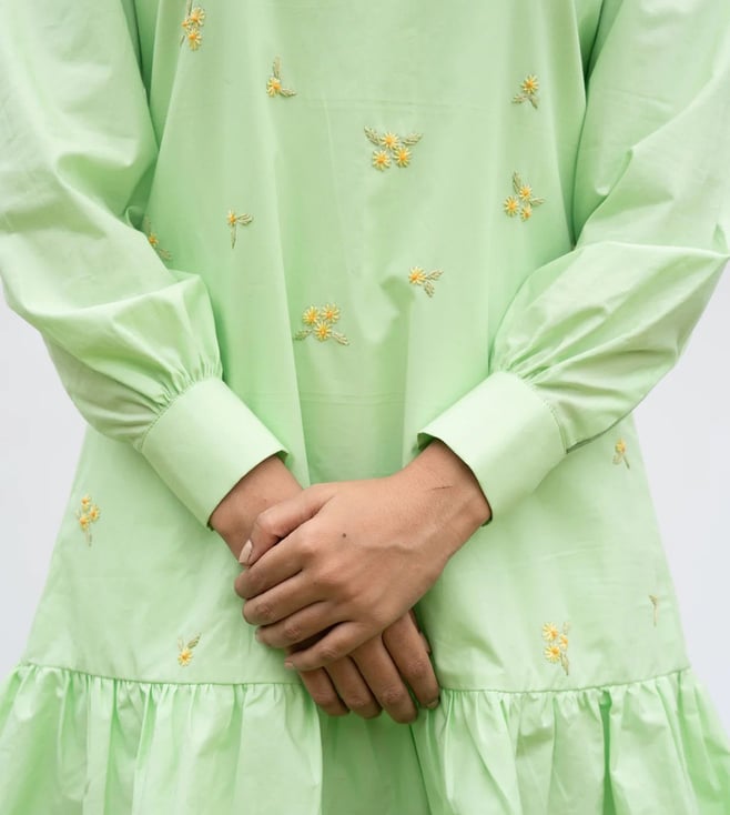MAI India Mint Green Cotton Relaxed Fit Hand Embroidery Dress