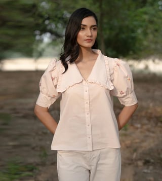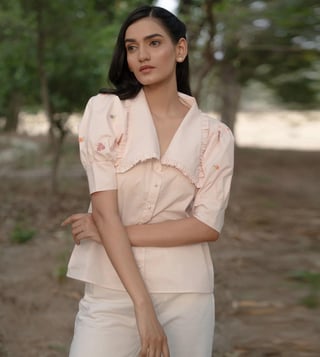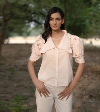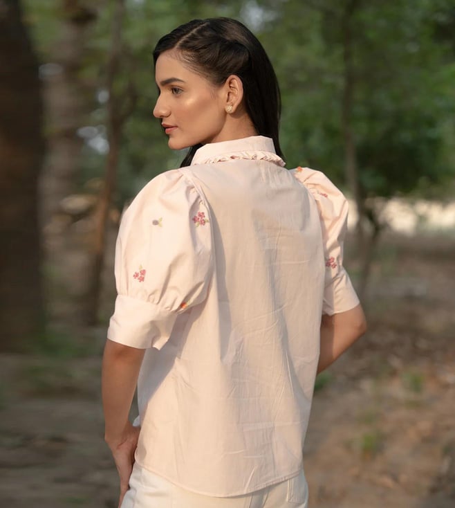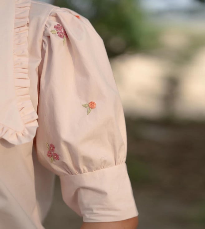 MAI India Powder Pink Cotton Relaxed Fit Hand Embroidery Shirt