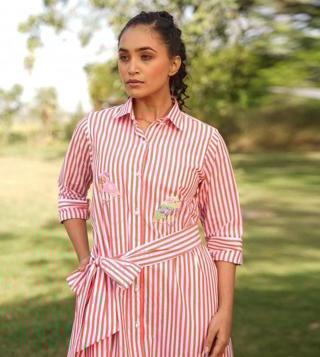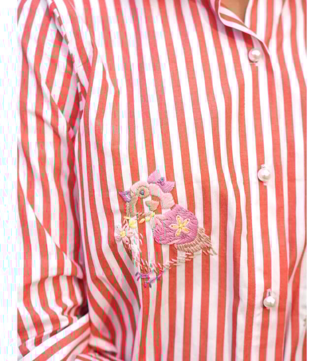 MAI India Red & White Stripes Cotton Relaxed Fit Hand Embroidery Dress