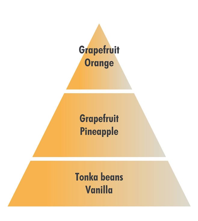 The sparkling zest fragrance is an ode to new-found freshness, the energy of its citrus notes are draped in sensuality with the spicy scents of musk. The essential oil of grapefruit promises a healthy, refreshing and invigorating atmosphere.