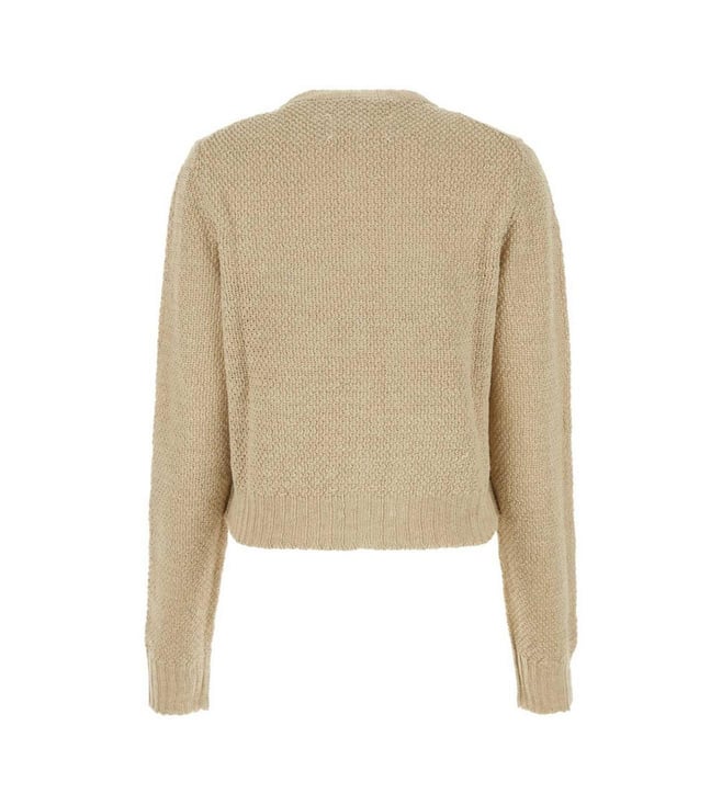 Maison Margiela Beige Knitted Long-Sleeve Woven Design Cardigan