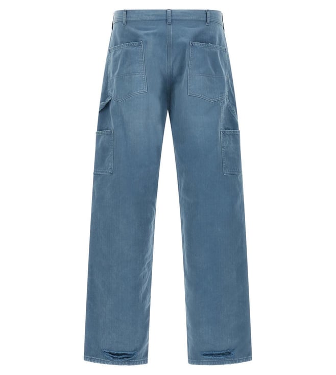 Elevate your style with the Maison Margiela Light Blue Straight Fit Jeans. Herringbone cotton jeans with usedeffect details, zip and button closure, pockets, straight leg, four stitches at the back. true to size fit Crafted for durability and comfort. Products purchased from Darveys are supported exclusively by the warranty/exchange policies of Darveys and its partner boutiques. Brand owners and their channel partners are not responsible for exchange/warranty services for items purchased through Darveys.