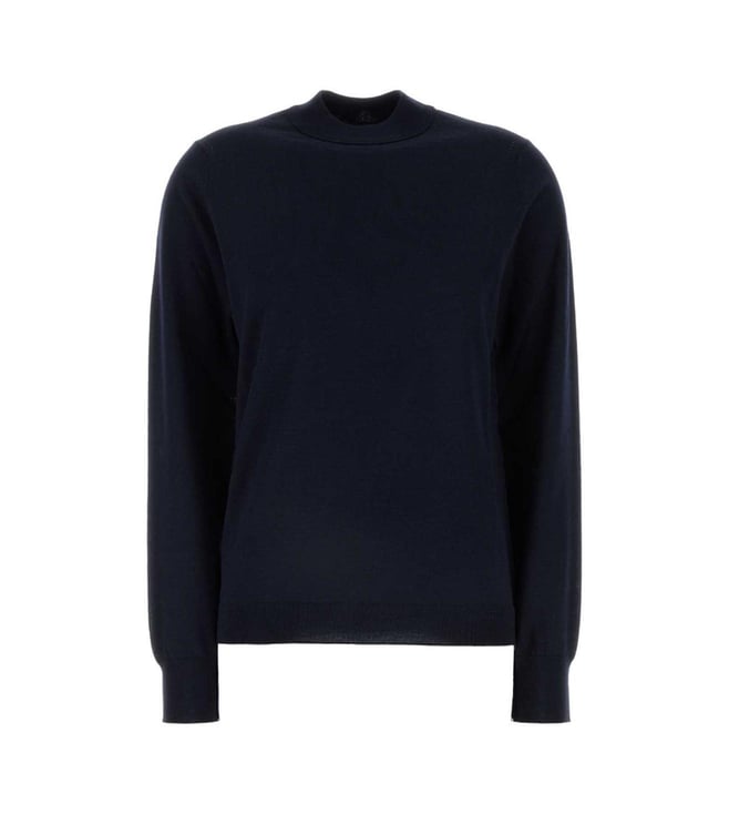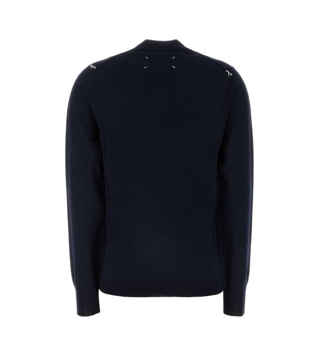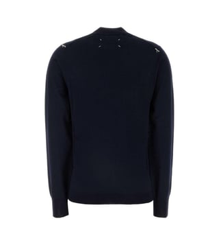 The Maison Margiela Navy Blue Crewneck Pullover is a masterpiece of understated elegance, crafted from luxurious 100% wool. Its deep navy hue evokes the tranquility of twilight, while the subtle pattern adds a touch of intrigue. Designed for the modern woman, this pullover features a classic crewneck silhouette that effortlessly complements any ensemble. The seamless closure ensures a sleek fit, making it a versatile staple for both casual and sophisticated occasions.
