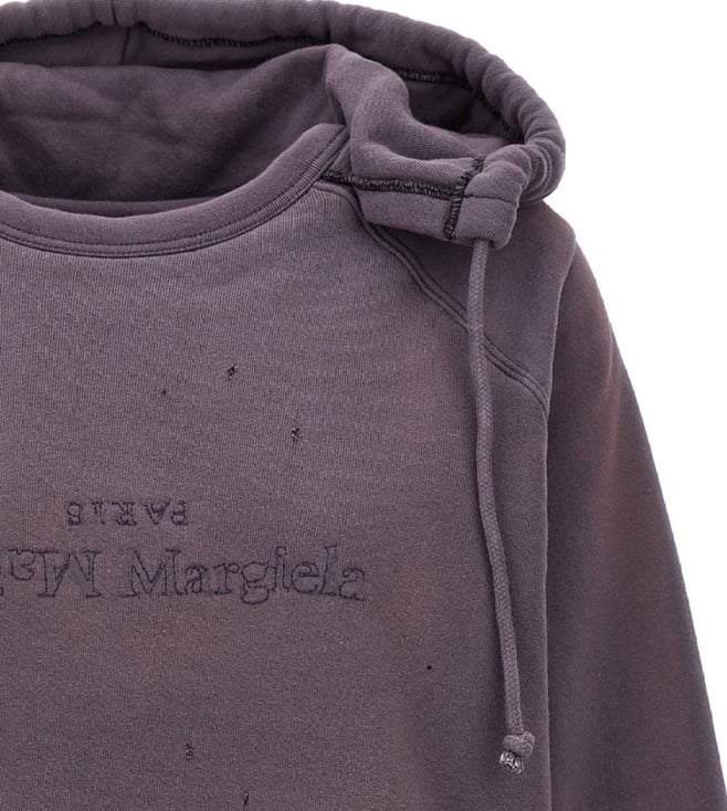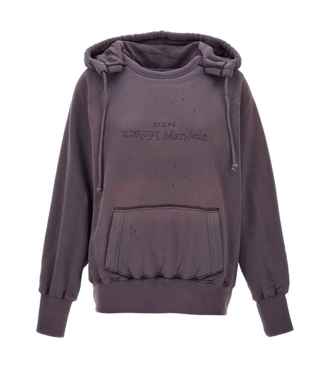 Maison Margiela Purple Logo Reverse Hoodie Relaxed Fit Sweatshirt