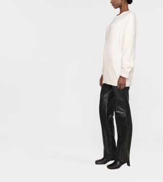 The Maison Margiela White Brushed Effect Jumper is a masterpiece of modern fashion, blending elegance with avant-garde flair. Its ethereal white hue is accentuated by a unique brushed effect, creating a textured pattern that dances with light and shadow. Crafted from a luxurious blend of 86% cotton and 14% polyamide, this jumper offers a soft yet structured silhouette. Designed for the discerning woman, it features a seamless closure, ensuring a sleek, uninterrupted line that exudes sophistication and contemporary charm.