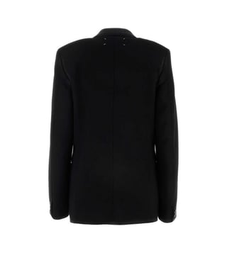 Elevate your wardrobe with this exquisite white blazer, a masterpiece of sartorial elegance. Crafted from 100% wool, it offers a luxurious feel and impeccable drape. The solid pattern exudes timeless sophistication, while the long sleeves and lapel collar add a touch of classic refinement. Designed for the modern woman, its sleek closure ensures a tailored fit, making it a versatile piece for both professional and social settings. This blazer is the epitome of chic, effortlessly enhancing any ensemble.
