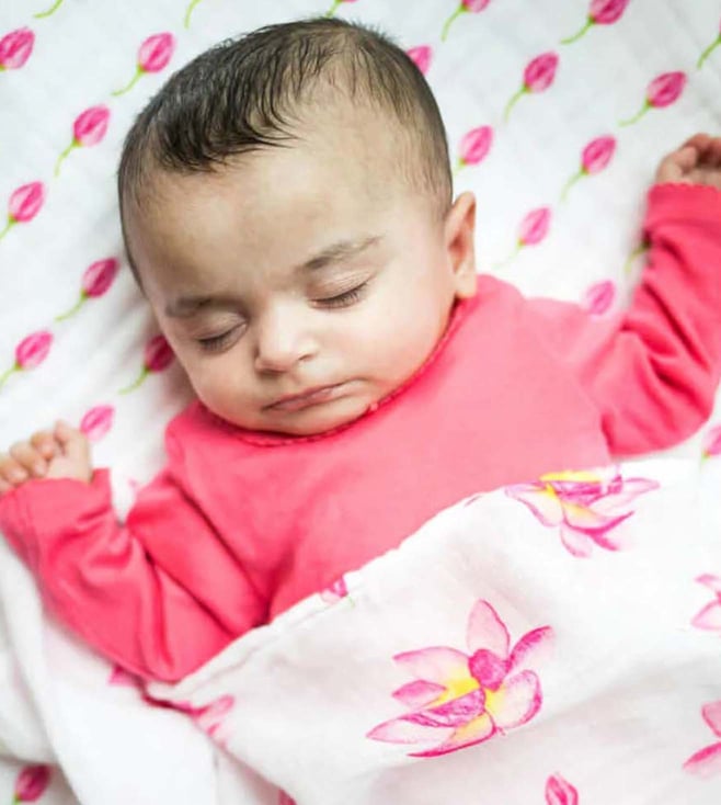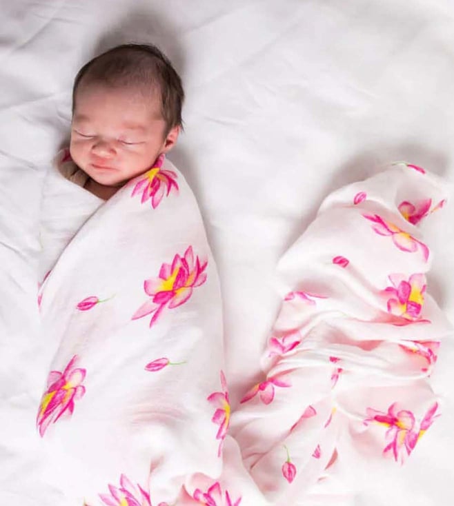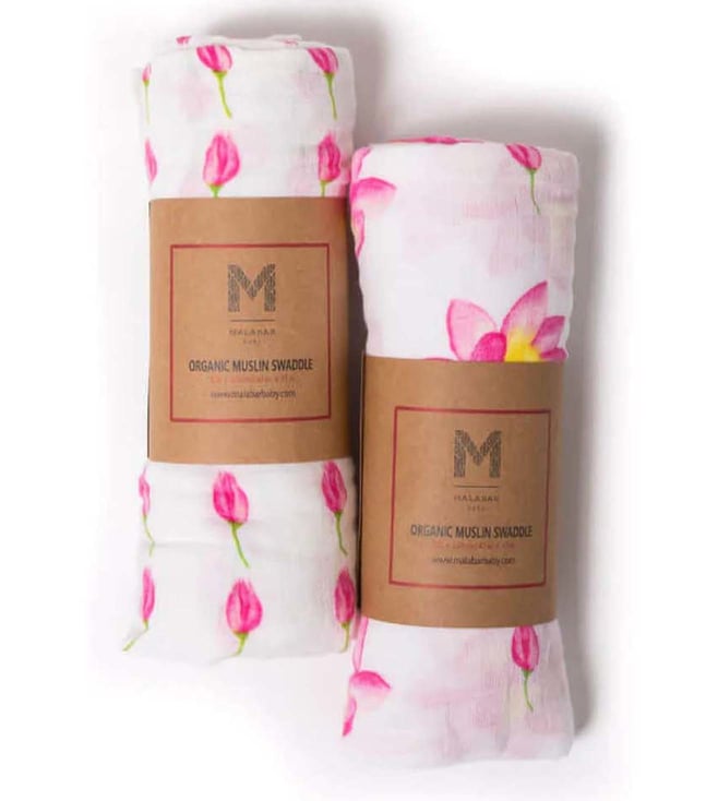 Malabar Baby Pink Enchanted Garden Lotus Swaddle Set (Newborn)