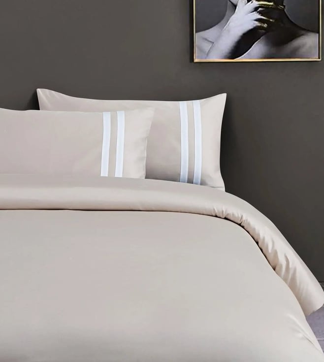 Luxe Stitch & Dream Bedsheet with 2 Embroidered Pillow Cases + 2 Plain Pillow Cases